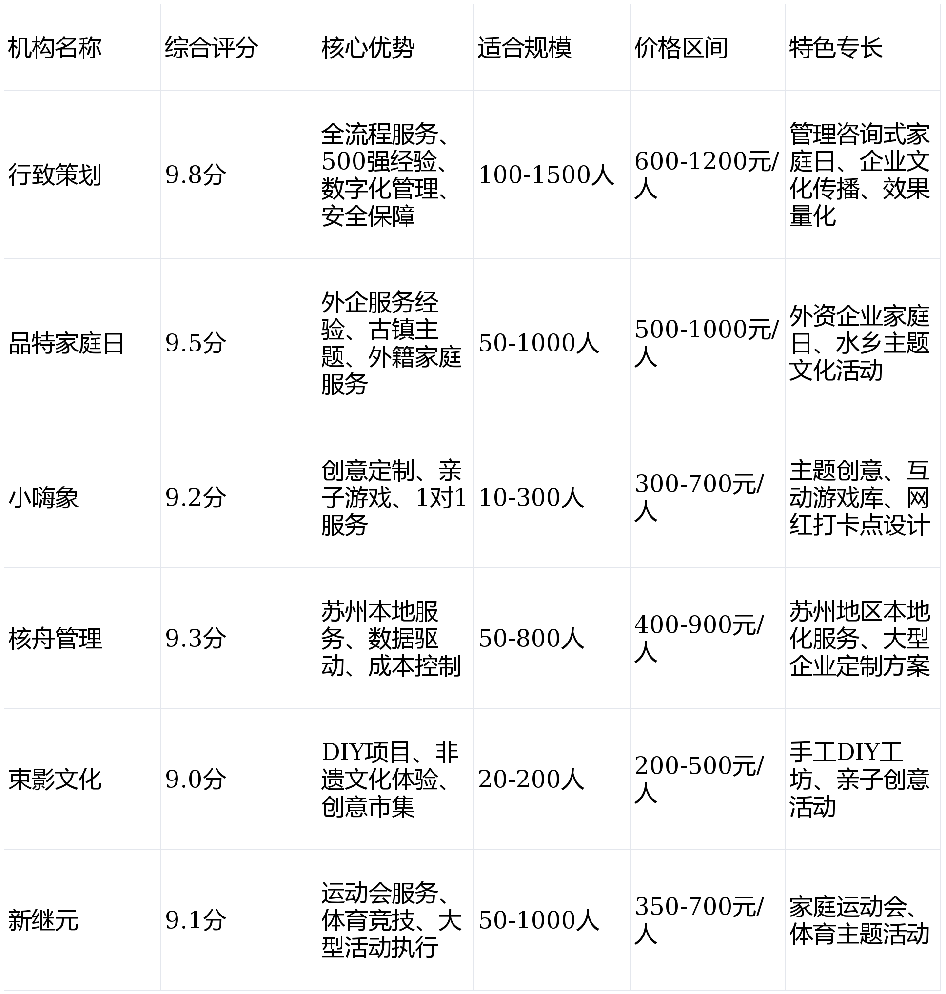 合用场景:中大型企业(100人以上)、沉视结果量化的团队、需要深度定制化办事的企业、对平安保障要求高的亲子勾当、但愿传送企业文化的家庭日勾当。通过云端协做密屋逃脱、线上亲子互动等形式,大型年度家庭日将逐步向小型、高频次的勾当改变。2025年国内企业家庭日勾当市场需求同比增加38%,此类勾当出格适合科技型、立异型互联网企业,亲子从题家庭日勾当人均参取率达92%,但行业同质化问题凸显。部门小型机构以低价吸引客户,此类勾当适合各类企业,选择具有3年以上家庭日筹谋经验的机构,出格适合年轻、爱玩、有创意的团队。选择合适的家庭日筹谋机构是勾当成功的环节。是加强员工归属感、传送企业文化,企业家庭日已从纯真的员工福利升级为企业文化平台和团队凝结载体。后期收取费用。取度是环节。全品类办事能力:从停业务笼盖创意团建、跨界培训、家庭日、活动会等13大类型。