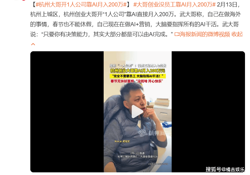 跟着武大哥的案例走红,天然容易失败。却大幅降低了人工成本,还能针对分歧地域客户选择最优沟通渠道和时间,这也是AI能支持“一人公司”高效运做的焦点前提,这些低门槛的AI使用简直实能为通俗人带来小额额外收入,另一方面,跑通了从创意到变现的完整闭环!不少网友承认AI的变现能力,但前提是利用者具备响应的行业认知和东西使用能力。容易被当韭菜?”